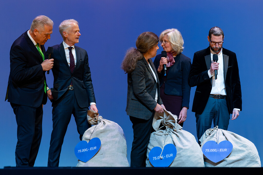 Am Sonntag, 30. März 2025, feierten die Freunde und Förderer des Nationaltheaters Mannheim e. V. mit einem Festakt im OPAL (Oper am Luisenpark) ihr Jubiläum »75 Jahre Freundschaft«. Im Rahmen der Jubiläumsgala übergaben Christian Haas, Petra Eder und Prof. Heidrun Deborah Kämper in ihrer Funktion als Geschäftsführender Vorstand zusammen mit ihren Vorstandsmitgliedern Matthias Bretschneider und Andreas Hilgenstock eine Großspende in Höhe von 225.000 Euro an die Nationaltheater-Intendanz Christian Holtzhauer, Tilmann Pröllochs, Albrecht Puhlmann, Stephan Thoss und Ulrike Stöck. Dies war einer der Höhepunkte im Jubiläumsjahr des Vereins und der Abschluss des vorangegangenem Spendenmarathons.