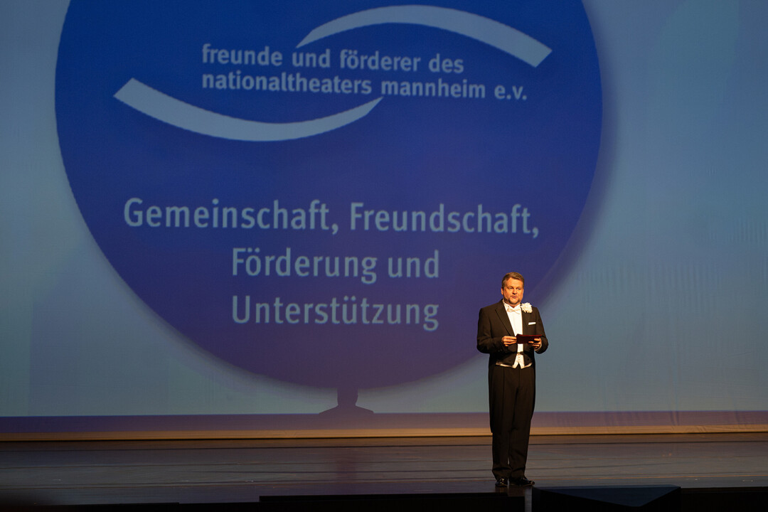 Außerordentlich erfreut und zugleich tief bewegt bedankte sich der Geschäftsführende Intendant Tilmann Pröllochs im Namen des Nationaltheaters: »Seit 75 Jahren stehen die Freunde und Förderer treu an der Seite unseres Theaters und schenken ihm eine beständige Unterstützung, die immer wieder weit über rein finanzielle Hilfen hinausgeht. Das ist nicht selbstverständlich und dafür bedanken wir uns aus vollem Herzen. Die Geschichte zeigt, dass der Verein stets eine bedeutende Rolle gespielt und mit großem Engagement und Überzeugungskraft viele wichtige Projekte ermöglicht hat. Mit den eingeworbenen Spenden des Vereins für die Generalsanierung kommen wir unserem Ziel wieder ein großes Stück näher. Wir sind überaus dankbar für die großartige Unterstützung und arbeiten mit vollem Einsatz daran, das Nationaltheater am Goetheplatz bald wieder zum leuchtenden Ort der Kunst für alle Mannheimerinnen und Mannheimer zu machen!«