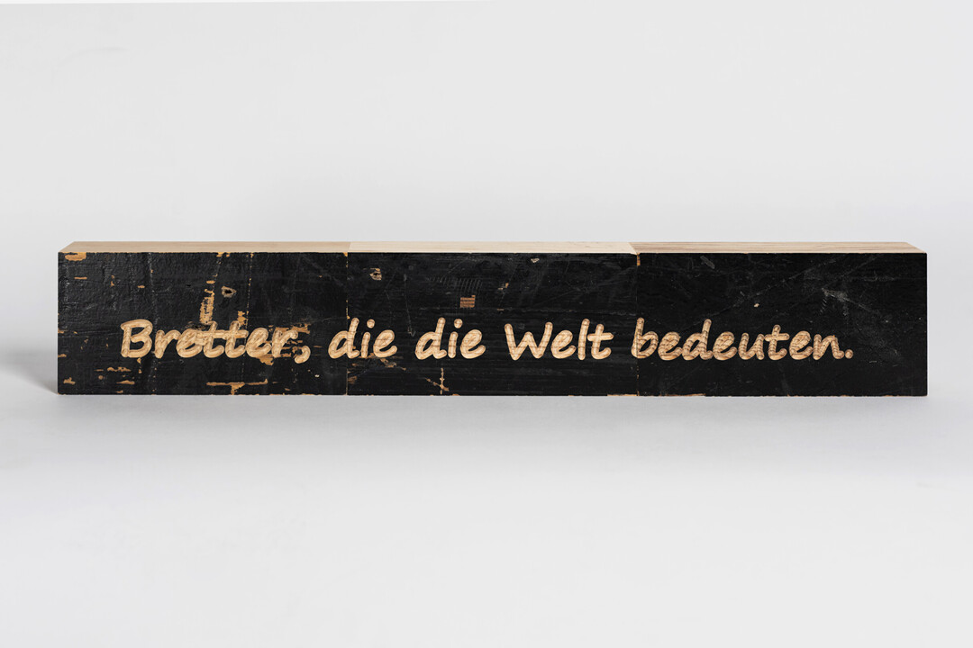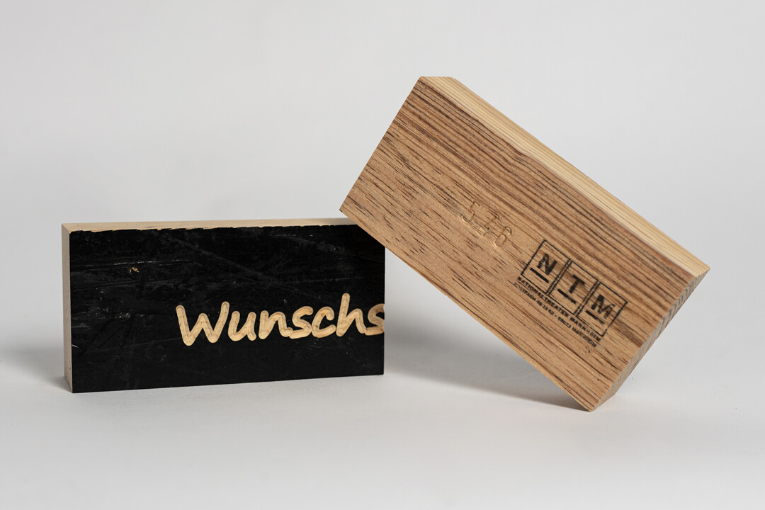Die Bühnenstücke sind blanko oder mit eingravierten Zitat aus dem Opern-und Schauspielkontext an der Theaterkasse und hier zu erwerben. Die Erlöse kommen Projekte der Generalsanierung zugute.