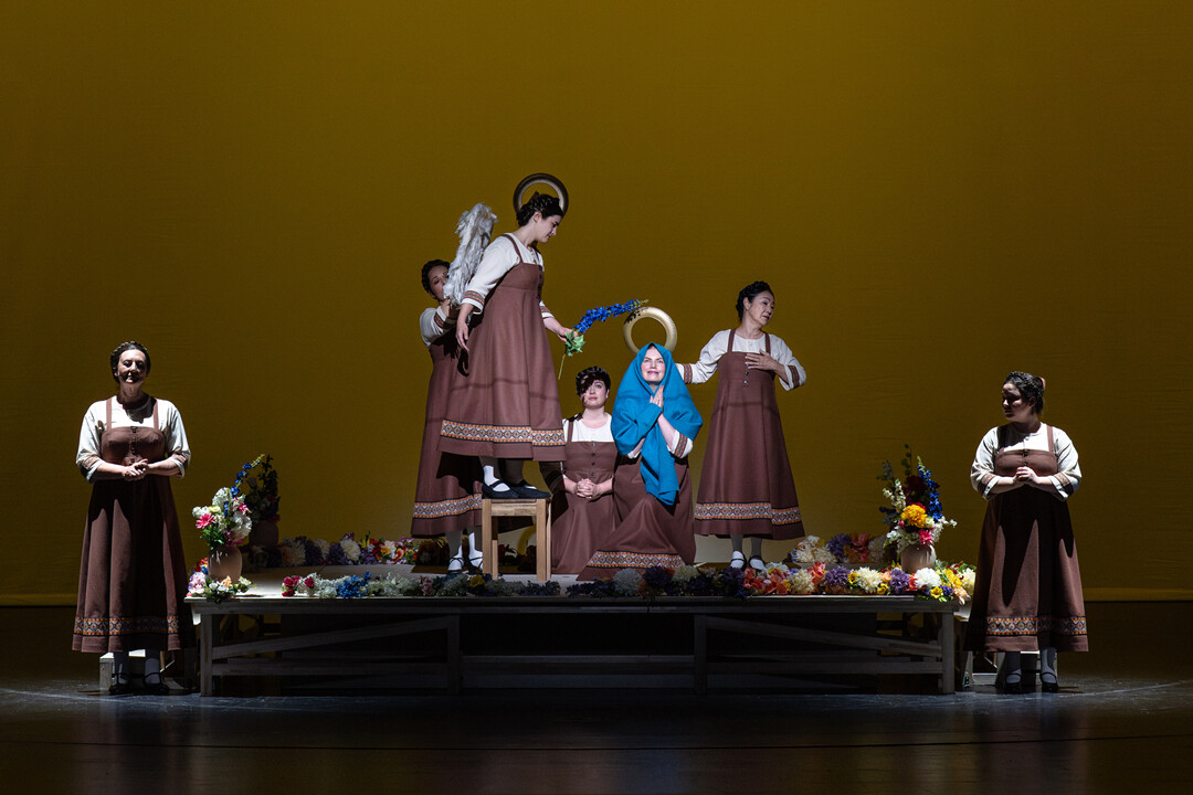 Angeblich wurde Puccini durch den großen Erfolg von Mascagnis »Cavalleria Rusticana« zur einaktigen Oper hingezogen. »Il trittico« – das Triptychon – lässt sich entgegen der ursprünglichen Bedeutung des Wortes nicht wie ein »dreifaches Altarbild« verstehen, in dem drei einaktige Opern ein einziges Thema behandelten. Denn was verbindet die für die Verismo-Oper typische, düstere und gewalttätige Handlung von »Il tabarro« über die Bewohner eines Kahns auf der Seine mit der Erlösungsgeschichte von Schwester Angelica oder mit Gianni Schicchis urkomischer Farce aus Habgier und Intrigen? Puccini hat sich in der Konzeption an Dantes »Göttlicher Komödie« orientiert, und tatsächlich sieht man in aller Heterogenität der Teile einen gemeinsamen Weg von der Finsternis zum Licht, von der Hölle zur Erlösung. Das während des Ersten Weltkriegs entstandene Triptychon war Puccinis vorletztes Werk, dem nach achtjähriger Kompositionspause nur die unvollendete »Turandot« folgte. Nigel Lowery, der nicht nur Regisseur, sondern auch sein eigener Bühnen- und Kostümbildner ist, entwirft für Puccinis Meisterwerk einen völlig unverwechselbaren Bühnenkosmos, in dem sich gemalte und reale Welt begegnen.