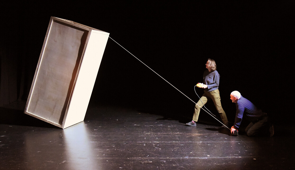 Was sind das für Kräfte, die Dinge in Bewegung setzen? Zwischen Manipulation und Autonomie beginnt alles auf der Bühne miteinander zu spielen: das Licht, die Musik, die Menschen und die Objekte. Kraft der Phantasie ist eine Kiste mehr als eine Kiste.