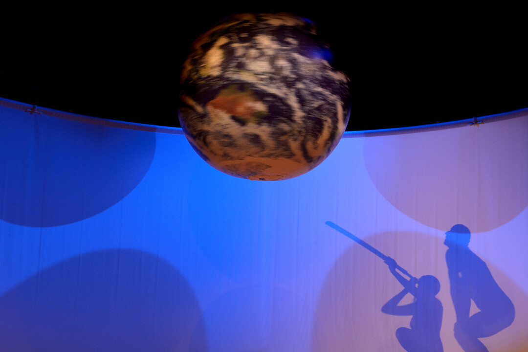 In einem Versuchslabor der runden Dinge, werden die kleinen und großen Fragen der Welt untersucht. Manuel Moser verwandelt die Bühne in ein fantastisches Universum, in dem das Spiel von Kugeln in Licht und Schatten die Fantasie von Kindern und Erwachsenen kreiseln lässt.