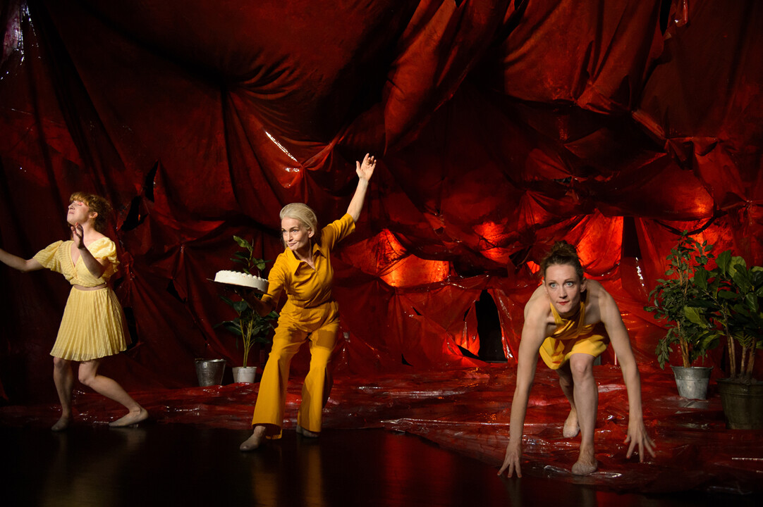 Drei Frauen in einem Hochhaus: Großmutter, Mutter und Tochter. Das Hochhaus zwischen heimeliger Zärtlichkeit und brutalistischer Kälte. Tochter Kitti, 17 Jahre alt, ist schwanger. Der Vater ihres Kindes lebt mit seinem Vater und Großvater ein paar Stockwerke darüber. Sollte sie das Kind bekommen, auch ohne ihn? Für Großmutter Sugar und Mutter Viki ist das die drängende Frage, die beiden sind Kittis Welt, halten und verstehen sie – denken sie. Denn Kitti empfindet ihre Nähe auch als erdrückend und ihre Streitereien als ermüdend. Will sie das Kind überhaupt? Wie kann sie sich entscheiden? Die Autorin Ivana Sokola untersucht das dichte Gewebe zwischen drei Generationen, die Verbindungen dreier Frauen und ihre Spuren innerhalb der Familie. Dabei schreibt sie in einer drastischen und poetischen Sprache und macht die drohende Möglichkeit des Sprungs vom Hochhaus zur Dramaturgie ihres Stücks. Gibt es einen anderen Ausweg für Kitti?