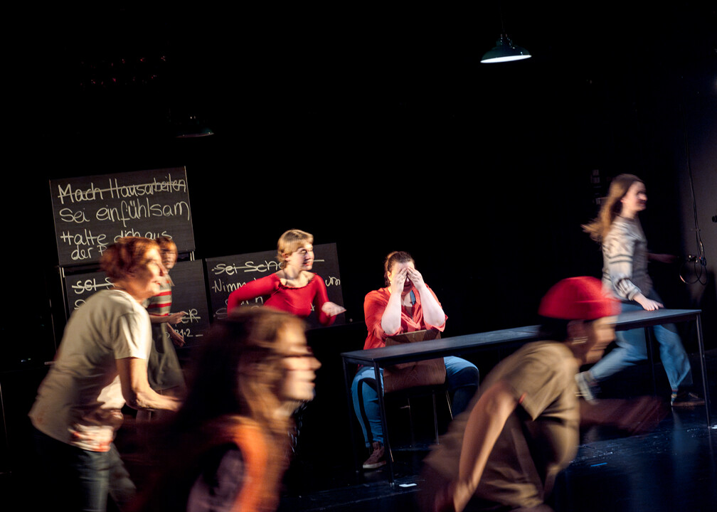 Der Mensch gewinnt im Spiel Erfahrungen. Diese haben, so die Theorie, die Macht individuelle Eigenschaften und Verhaltensweisen einer Person zu formen. Das Spiel birgt also ein großes Potential in sich: Es erschafft nicht nur ein Abziehbild unserer Welt, sondern beinhaltet die Möglichkeit zur Erprobung einer friedlichen Zukunft. Auch der Krieg spiegelt sich im Spiel wieder, zum Beispiel als Männerdomäne in den Spielen von Jungen: Sie schießen mit Stöcken, kämpfen mit Schwertern und Wasserpistolen. In Ego Shootern und strategische Computerspiele werden Kriege simuliert. Doch wo sind eigentlich die Frauen in diesen Spielen und welche Rollen übernehmen sie in realen Kriegen? Um Antworten auf diese Fragen zu finden, begab sich die Theatermacherin Natasha Borenko in Mannheim auf die Suche nach Geschichten von Frauen, die Krieg erleben mussten, aus Krisengebieten geflüchtet sind und tagtäglich mit den Folgen kämpfen. In den Proben teilten die Frauen unterschiedlicher Generationen ihre Kriegserlebnisse miteinander. In einer Art Forschungslabor erprobten sie Regeln alter Kinderspiele, veränderten diese und erfanden sie schließlich neu. Sie erforschten, wie sich die Veränderung der Spielregeln auf die Realität auswirkt. Entstanden ist ein Theaterabend, der durch die Erkundung von Geschichten und durch das Verändern von Spielen eine neue Welt schafft.