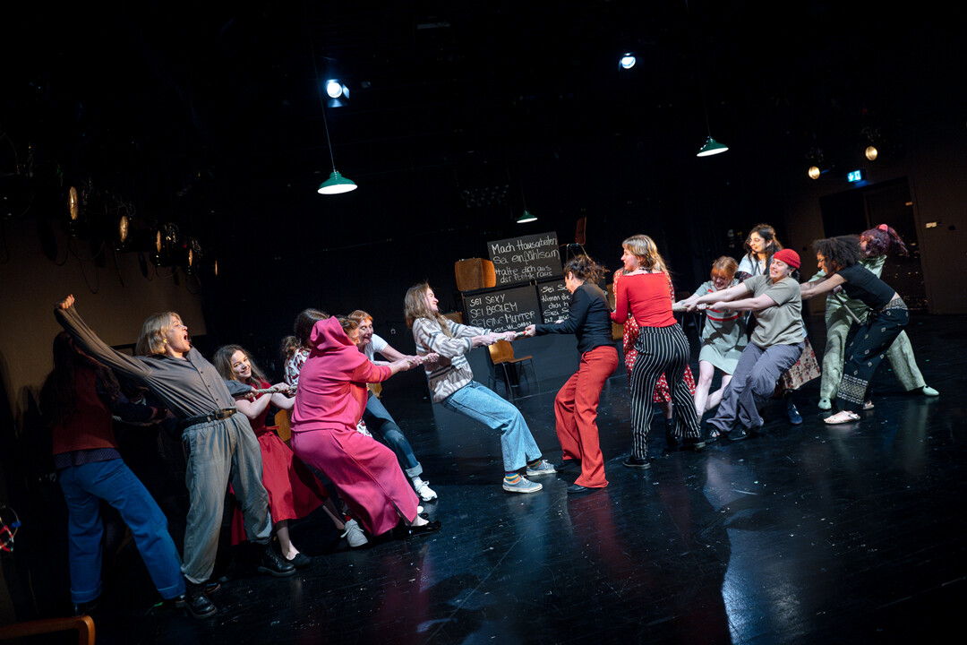 Natasha Borenko, seit 2019 in Berlin lebende Regisseurin aus Sibirien, Psychologin und Spezialistin für Dokumentartheater hat ein Anliegen: Sie möchte Frauen den Raum geben, über ihre Kriegs- und Fluchterfahrungen in der Öffentlichkeit zu sprechen, ihre Gefühle und Erfahrungen mit dem Publikum zu teilen. […] Was macht Krieg speziell mit den Frauen? Schon im Spiel verhalten sie sich anders als Männer. Erschreckend jedoch, wie einfachste Kinderspiele in Wort und Ziel dem Krieg ähneln! So erweist sich die dramaturgische Idee, Spiel und Kriegserzählung strukturell zu verknüpfen, als bestürzend sinnfällig. […] Lebendig, authentisch und natürlich schildern die in Alter, Herkunft und Sprache unterschiedlichen Kriegs-Zeuginnen ihre Eindrücke. (Mannheimer Morgen, 11.03.2024)