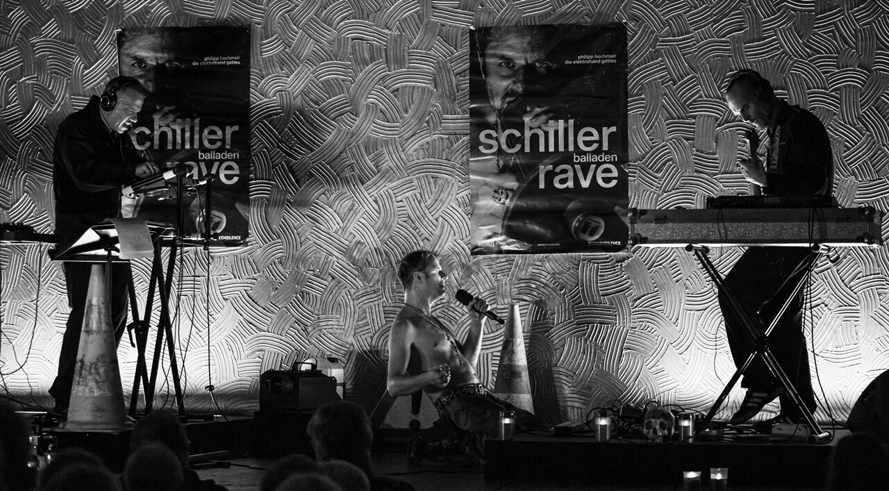 Gemeinsam mit seiner Band »Die Elektrohand Gottes« vertont Schauspieler Philipp Hochmair, der auf der Bühne genauso zuhause ist wie in Film und Fernsehen, einige seiner Schiller-Lieblingsballaden. »Die Balladen sind Zündstoff, den wir mit der Maschinerie unserer Geräte abbrennen wollen«, verspricht er. Sie dürfen sich auf Höhepunkte deutscher Lyrik und zugleich ein ausschweifendes Rockkonzert mit energetisierenden Techno-Einschlägen freuen.