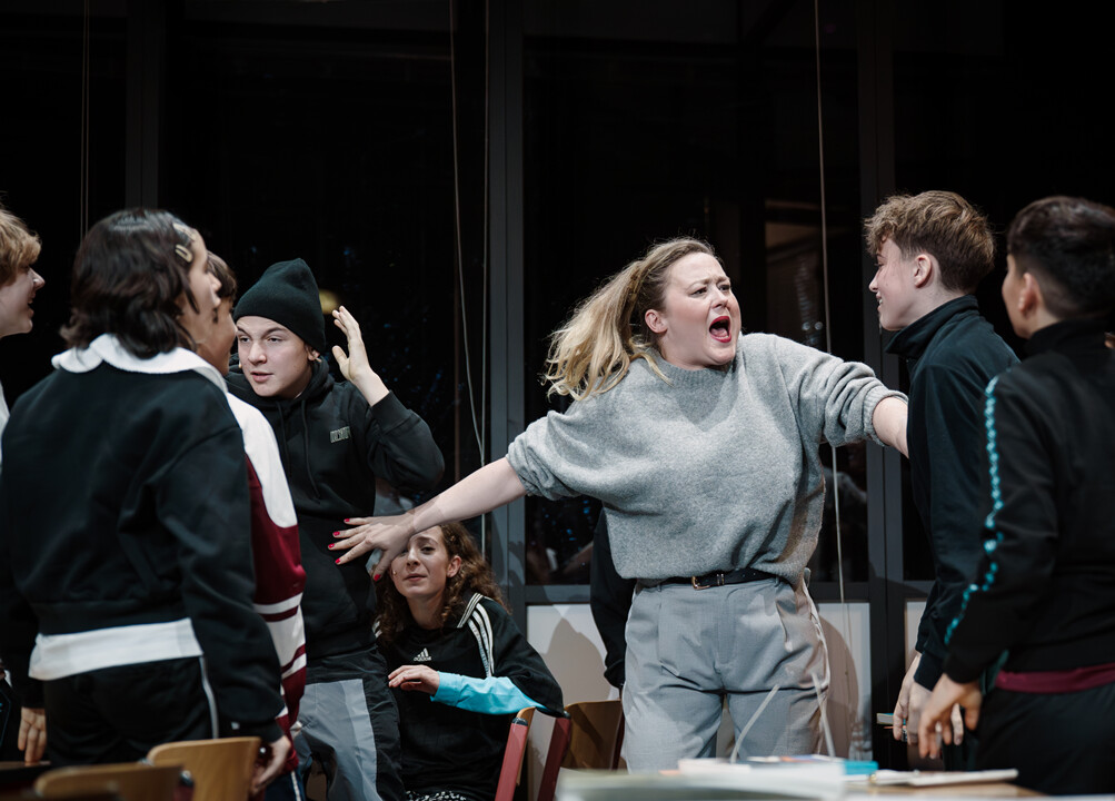 Wie in einem modellhaften Gesellschafts-Experiment ringen Schulleitung, Kollegium und Schülerschaft um das richtige Verhalten. In ihren Dialogen offenbart sich ein gesamtgesellschaftliches Panorama von unbewussten Vorurteilen, Machtverhältnissen, Konfliktdynamiken und Erwartungen an Erziehung und Schule. Drehbuch und Bühnenadaption geben dabei auch den Schüler*innen das Wort, die in Zukunft unsere Gesellschaft gestalten: Gemeinsam mit dem Ensemble des Nationaltheaters steht eine Gruppe von 15 Kindern und Jugendlichen aus Mannheim und der Region auf der Bühne.